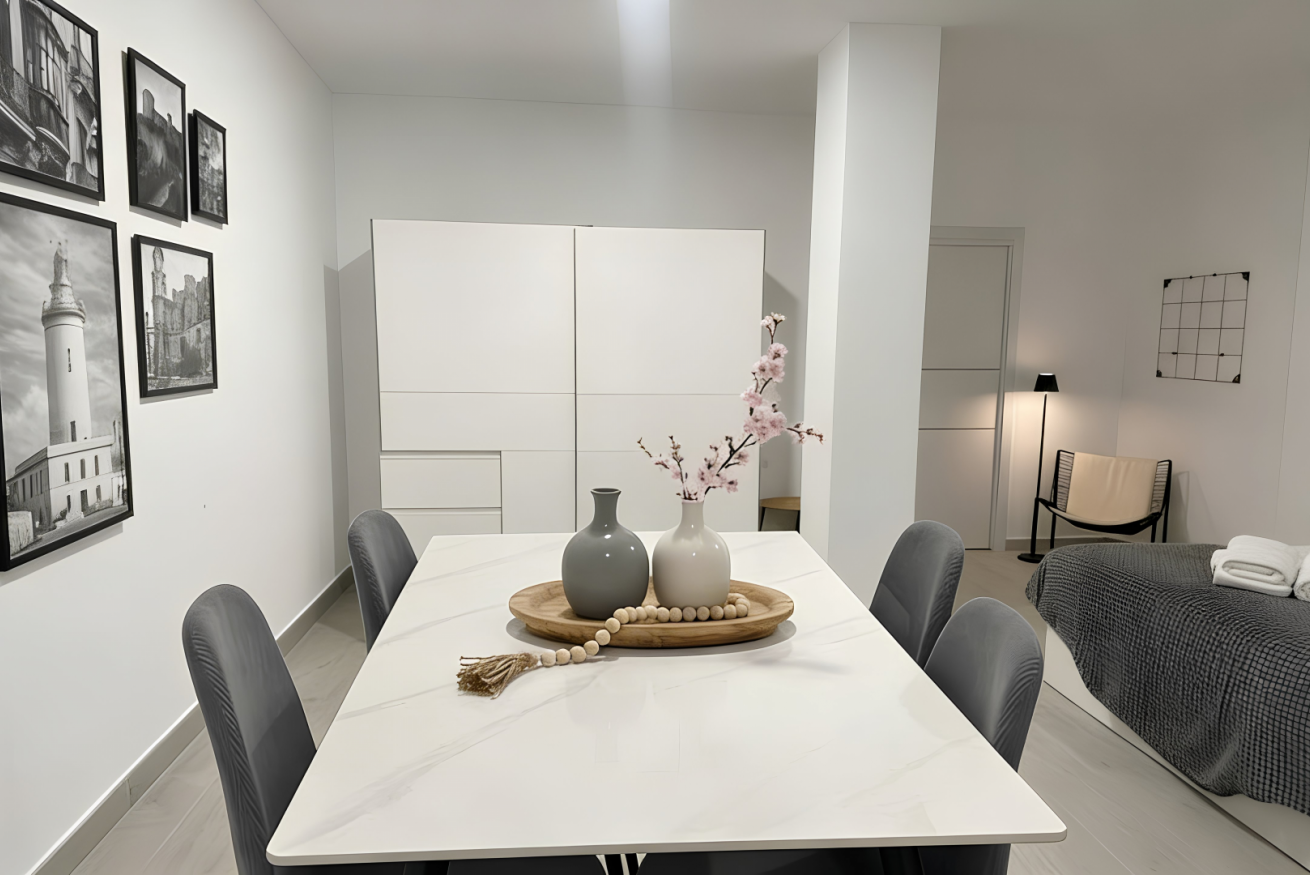 La vivienda ha sido diseñada con un estilo moderno, elegante y funcional. Su distribución diáfana y luminosa crea un ambiente amplio y acogedor, ideal tanto para parejas como para familias o pequeños grupos de hasta 4 personas.