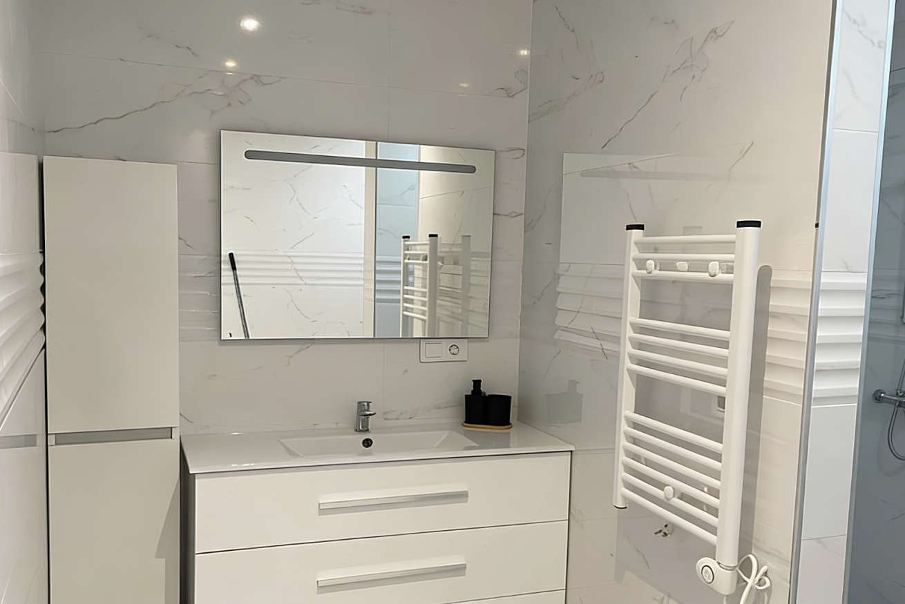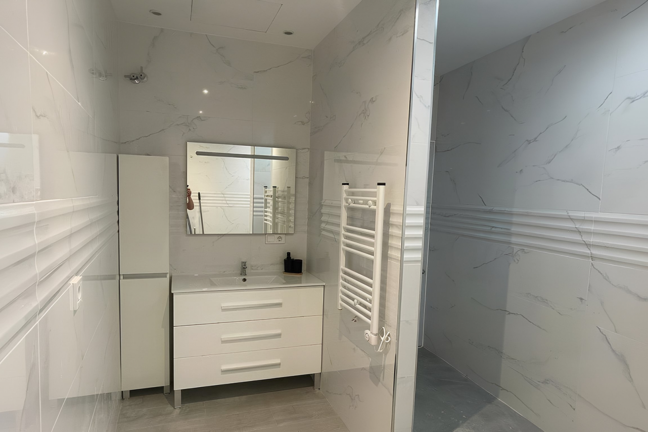 Baño completamente nuevo con ducha amplia, acabados actuales y equipamiento pensado para tu comodidad.