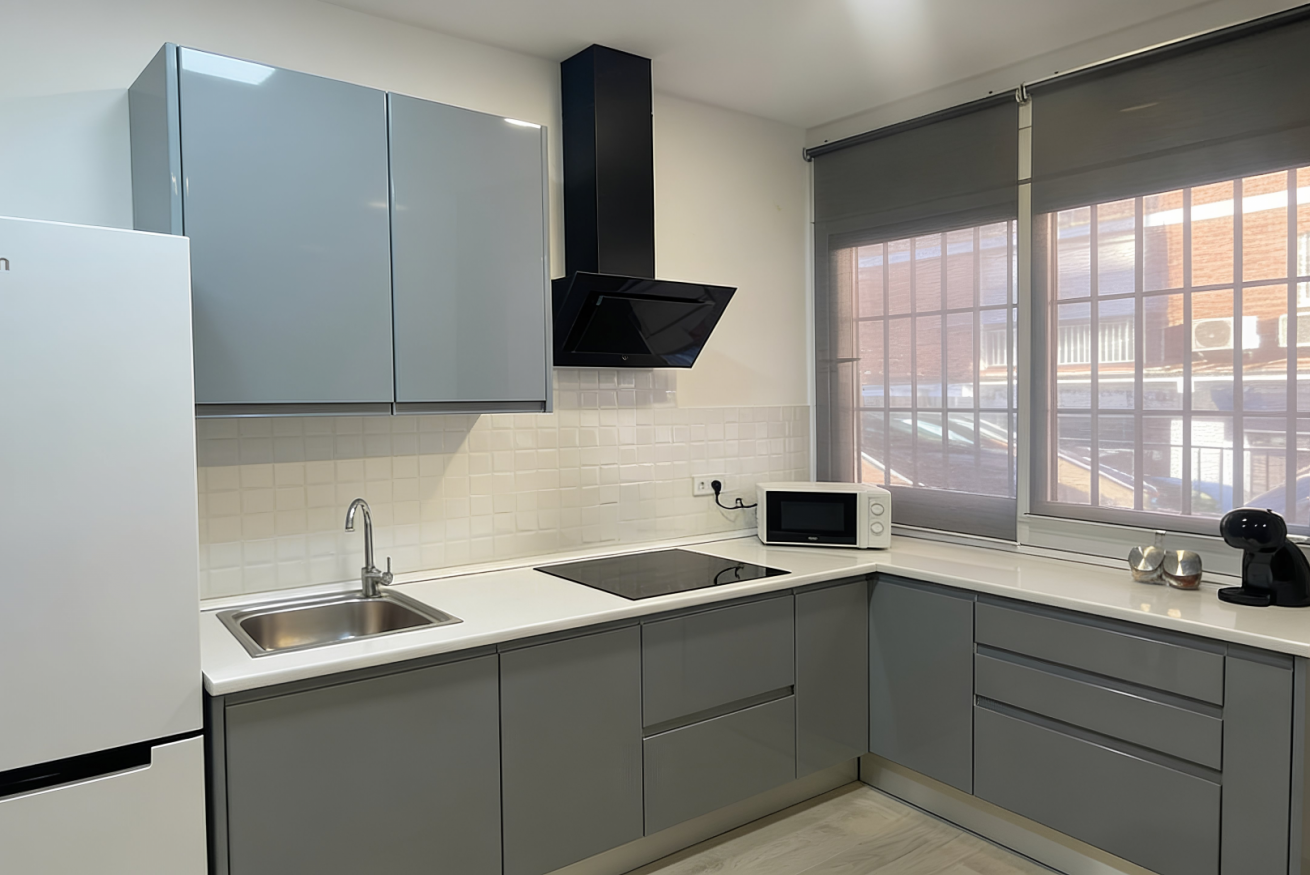 Electrodomésticos nuevos, menaje completo, cafetera, microondas y todo lo necesario para preparar cualquier comida como en casa.
